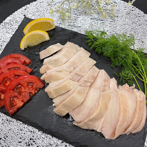味もしっかり付いてるので軽く油を掛ける。又はオーブントースターなどで皮面を軽く焼くだけで本格的脆皮鶏を提供出来ます。