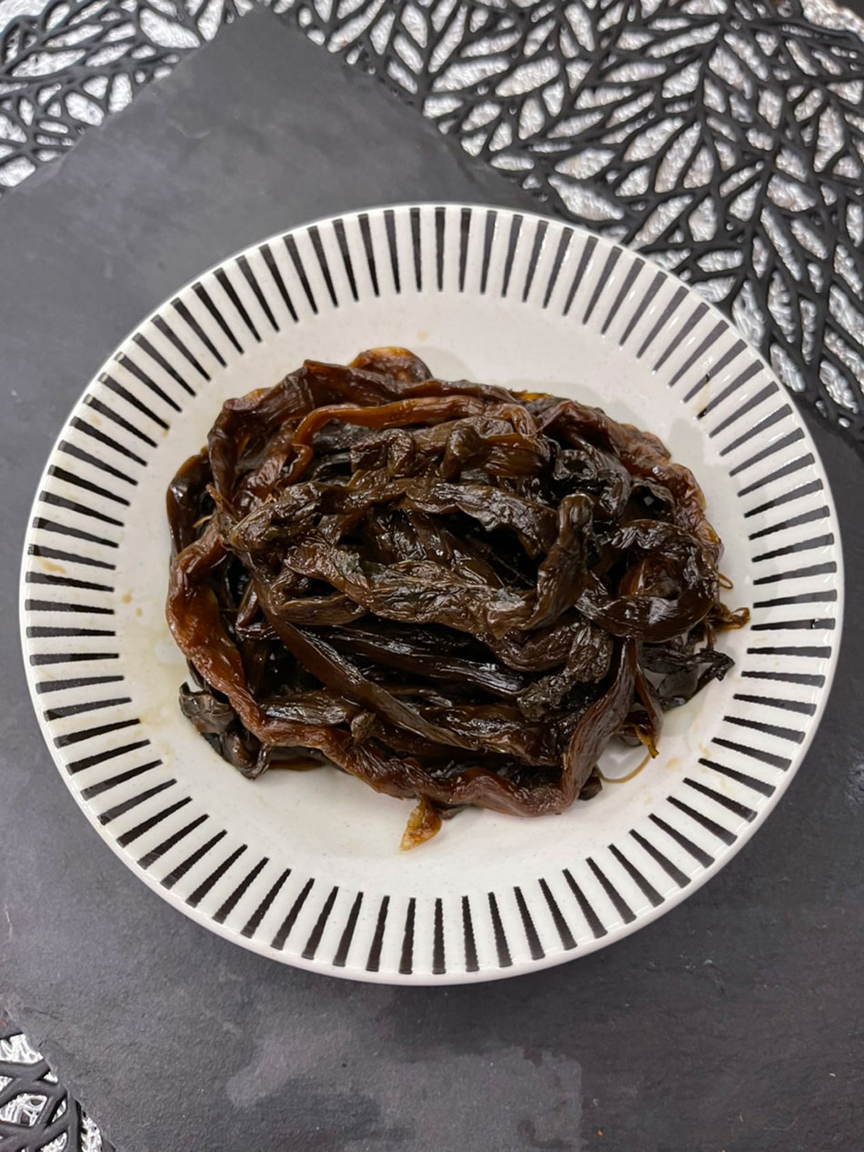 芽菜(ヤーサイ)の醤油古漬け。古漬け特有のまろやかさと、芽菜の歯ごたえがあります。坦々麺に欠かせない材料です。